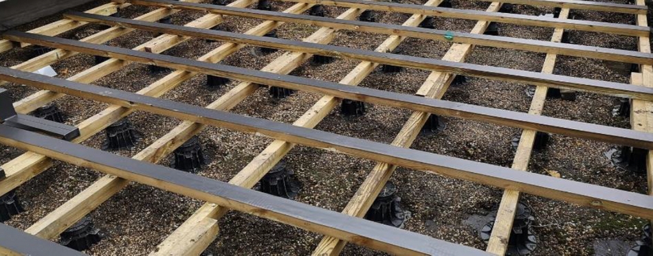 Bleau’parquet installe ses terrasse sur un sol stabilisé en double lambourdages et avec des plots béton ou plots réglables.