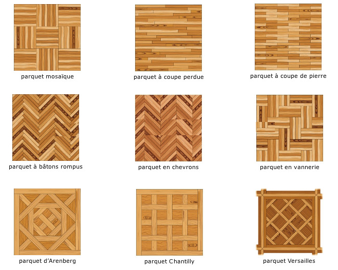 Parquet à l’anglaise, parquet en point de Hongrie, parquet à bâton rompu, panneaux de Versailles, parquet en mosaïque…